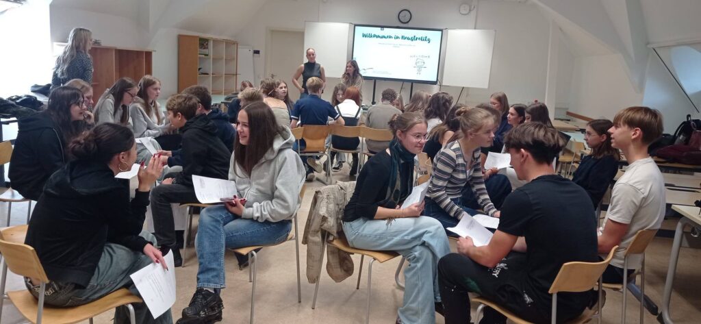 9 października uczniowie klasy 1F wyruszyli w teatralną przygodę do Uckermärkische Bühnen Schwedt!Na scenie czekał na nich polsko-niemiecki spektakl „Every heart is built around a memory” – nowoczesny, interaktywny i… zupełnie inny niż typowa szkolna lektura! Widzowie nie tylko oglądali, ale też decydowali o przebiegu akcji – i to się dopiero nazywa władza! Okazało się, że uczniowie 1F potrafią nieźle pokierować losami bohaterów, a przy tym świetnie się bawić. Niektórzy po raz pierwszy uczestniczyli w tak interaktywnej formie sztuki – i zgodnie uznali, że było to niezwykłe doświadczenie! Sztuka poruszała ważne tematy – emocje, wspomnienia, przyjaźń i dorastanie – ale wszystko podane było w świeżej, nowoczesnej formie. Nikt nie mógł się nudzić!
